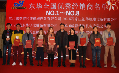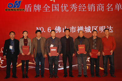 會議期間,宣董事長向東華16名2015年度“優秀經銷商”和盾牌6名“優秀經銷商”頒發了榮譽證書,并合影留戀。