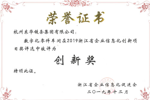 東華鏈條榮獲2019浙江省企業信息化創新項目創新獎