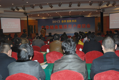 宣碧華董事長首先致辭。他說,我首先代表東華集團(tuán),對大家在百忙之中來參加?xùn)|華的用戶座談會表示熱烈歡迎,也對大家一年來對東華的大力支持表示衷心感謝。過去的一年是比較困惑的一年,國內(nèi)經(jīng)濟(jì)形勢不太好,沒有高速增長反而有滑坡的跡象,特別是國際市場很明顯,金融方面,歐洲的主權(quán)債務(wù)方面的危機影響工業(yè)的發(fā)展,使很多訂單出現(xiàn)下降。從鏈條行業(yè)來看,很多企業(yè)外銷訂單明顯下降,基本下降30%以上,在這樣的形勢下,我們?nèi)绾闻袛嘁粋€企業(yè)是否健康?我從五方面判斷,一是訂單下降,客戶是否流失?如果我們的訂單下降,客戶沒有流失,這是暫時的,如果訂單下降,客戶流失,這是危險的;二是企業(yè)訂單下降與整個行業(yè)相比較的情況如何?東華外銷訂單下降與同行是同步的,說明這是國際發(fā)展趨勢,如果訂單下降比同行多,說明企業(yè)是有問題的;三是企業(yè)現(xiàn)金流是否斷層?有些企業(yè)投入一些高危行業(yè),帶來現(xiàn)金流緊張,也是危險的。四是企業(yè)的員工隊伍是否穩(wěn)定,骨干是否流失?如果說員工和骨干穩(wěn)定,企業(yè)也是健康的;五是經(jīng)營團(tuán)隊是否健康?從老板到整個經(jīng)營團(tuán)隊,碰到目前形勢不好,是否能理性、沉著應(yīng)對。這五方面如果判斷下來沒有問題,說明企業(yè)還是健康的。東華訂單與2011年持平,內(nèi)銷有所增長,客戶沒有流失反而增加,所以說是健康的。現(xiàn)金流比較富裕,整個2012年,包括技改投入、對外投資、基建投入、經(jīng)營用款收支平衡,現(xiàn)金流健康。整個員工隊伍穩(wěn)定,員工收入增加,同時,整個決策層看好形勢,對東華未來的發(fā)展充滿信心。