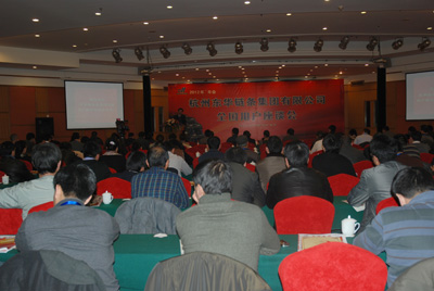 1月3日至5日,東華集團在余杭城市花園酒店隆重召開2012年全國用戶座談會。董事長宣碧華率集團高層、國內銷售精英與來自全國各地的經銷商、用戶代表250多人歡聚一堂,共商2012年攜手合作、互利共贏、穩健持續發展之大計。