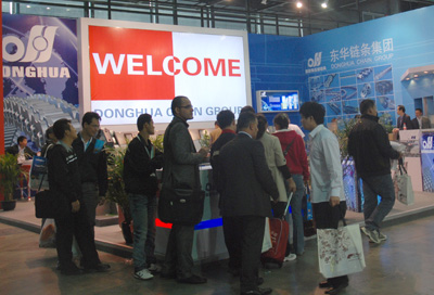本屆展會(huì)上,東華與2009年收購的德國百年企業(yè)KOBO鏈條公司同臺(tái)展出,展臺(tái)占地120多平方米,設(shè)計(jì)美觀、大氣,樣品、資料豐富齊全,整個(gè)展臺(tái)突出體現(xiàn)了“DONGHUA”、“KOBO”的品牌。展臺(tái)上半數(shù)樣品專程從德國KOBO公司運(yùn)送到上海亮相,其精良的德國制造產(chǎn)品和東華的自主品牌產(chǎn)品吸引了無數(shù)國內(nèi)外客戶的眼光。東華由外貿(mào)開發(fā)處處長胡春暉帶隊(duì)的業(yè)務(wù)員每天忙著接待國內(nèi)外新老客戶,向客人們介紹東華鏈條產(chǎn)品質(zhì)量及發(fā)展態(tài)勢等信息,聽取客戶的意見和建議。