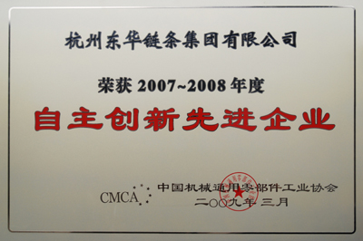 東華鏈條集團被授予“2007-2008年度自主創新先進企業”稱號