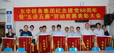 會(huì)上,總經(jīng)理張世強(qiáng)作了重要講話。張總說,在“七一”即將來臨之際,我們召開“紀(jì)念中國共產(chǎn)黨成立88周年暨五講五賽勞動(dòng)競賽表彰大會(huì)”。首先,我代表集團(tuán)領(lǐng)導(dǎo)、黨委向受表彰的先進(jìn)集體和先進(jìn)個(gè)人表示熱烈地祝賀,向他們表示崇高的敬意!號召全體黨員、全廠職工認(rèn)真學(xué)習(xí)他們的先進(jìn)事跡和崇高精神,立足崗位、艱苦奮斗,在生產(chǎn)勞動(dòng)中為企業(yè)建功立業(yè),在推動(dòng)?xùn)|華集團(tuán)持續(xù)發(fā)展中做出更大的貢獻(xiàn)。