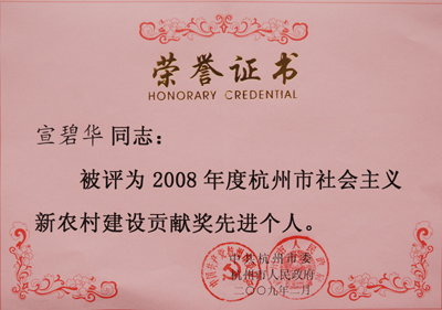 宣碧華被授予“杭州市新農(nóng)村建設(shè)先進(jìn)個(gè)人”稱號(hào)
