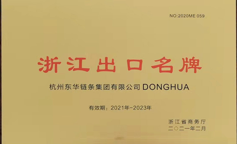 “DONGHUA”品牌被續認為“浙江出口名牌”
