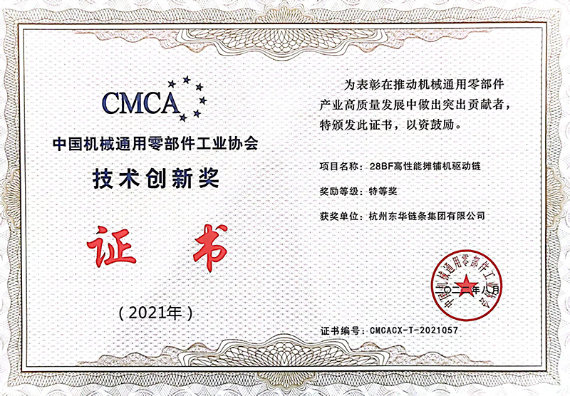 東華鏈條10項(xiàng)高端產(chǎn)品及裝備獲中國(guó)機(jī)械通用零部件行業(yè)技術(shù)創(chuàng)新獎(jiǎng)