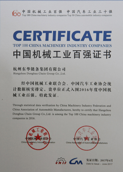 日前,由中國機械工業聯合會、中國汽車工業協會主辦,天津市濱海新區人民政府支持、中國機經網承辦的“中國機械工業百強企業、汽車工業三十強企業信息發布會”在天津濱海新區召開。東華鏈條集團繼2015年排名中國機械工業百強榜后,再次榮登2016年中國機械工業百強榜,排名第62位。