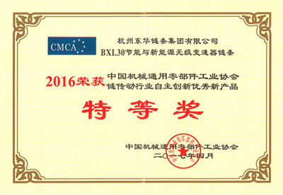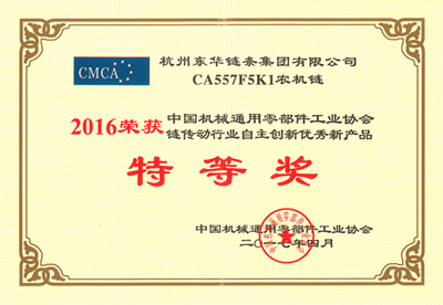 中國(guó)機(jī)械通用零部件工業(yè)協(xié)會(huì)自2004年來(lái)在全行業(yè)開(kāi)展了自主創(chuàng)新優(yōu)秀新產(chǎn)品獎(jiǎng)的評(píng)選活動(dòng),東華集團(tuán)連續(xù)13年每年都有高端產(chǎn)品獲獎(jiǎng),累計(jì)已獲得行業(yè)自主創(chuàng)新優(yōu)秀新產(chǎn)品獎(jiǎng)45項(xiàng)、其中特等獎(jiǎng)23項(xiàng)。2016年度的獲獎(jiǎng)項(xiàng)目再創(chuàng)新高,這些產(chǎn)品既充分展示了東華集團(tuán)科技創(chuàng)新取得的豐碩成果,也彰顯了公司在鏈傳動(dòng)行業(yè)的標(biāo)桿地位。