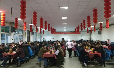 每年春節,公司都有不少員工因各種原因留守在杭州過年。今年春節前夕,集團公司黨政、工會對全體員工進行摸底調查,確定留守在杭州過年的有400多名外地員工,為了讓他們在杭州度過一個歡樂、溫暖、祥和的春節,公司與往年一樣,為他們舉辦“同吃年夜飯,歡度除夕夜”活動。飯桌上,圍坐在一起的員工,很多都來自不同的部門崗位,不同的省份,平時并不熟悉,但是,同吃“年夜飯”帶給大家的就是家的感覺。坐在“年夜飯”的飯桌邊,大家一下子成了“一家人”。