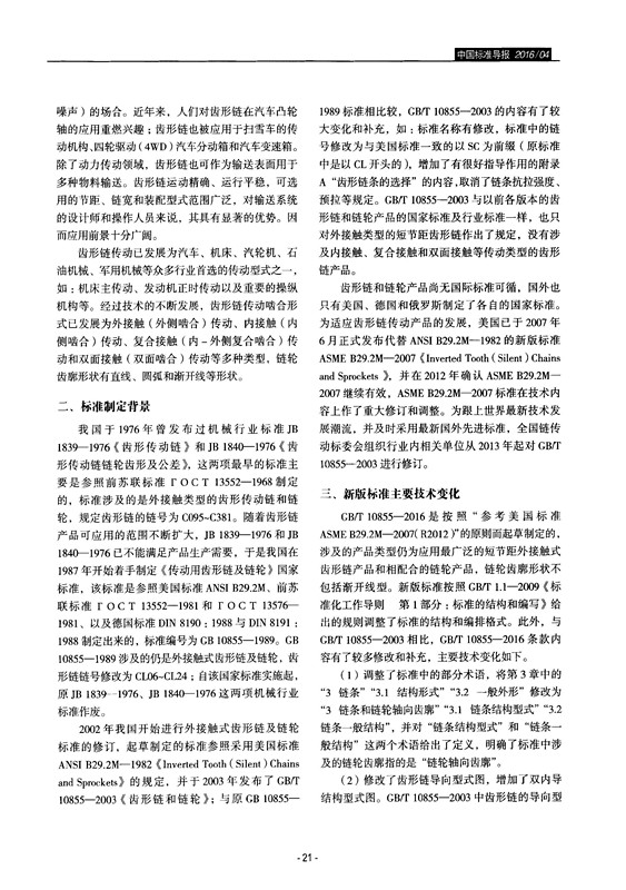 新版鏈傳動領域重要產品標準GB/T 10855—2016《齒形鏈和鏈輪》主要技術變化解讀
