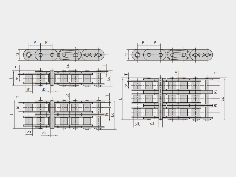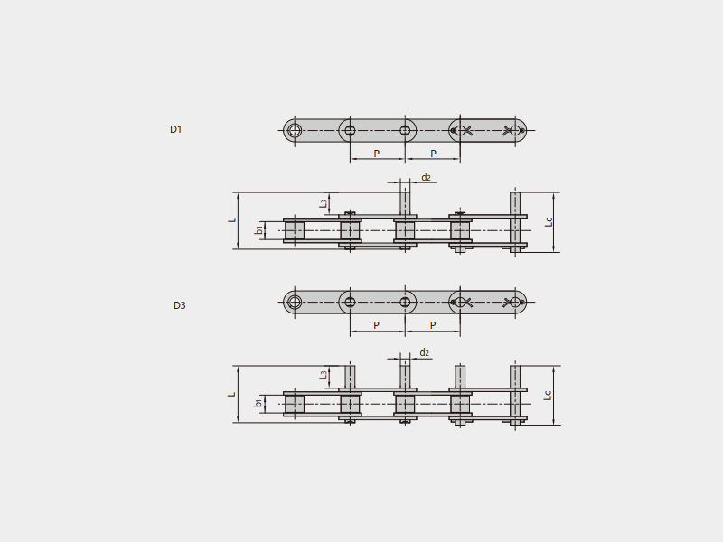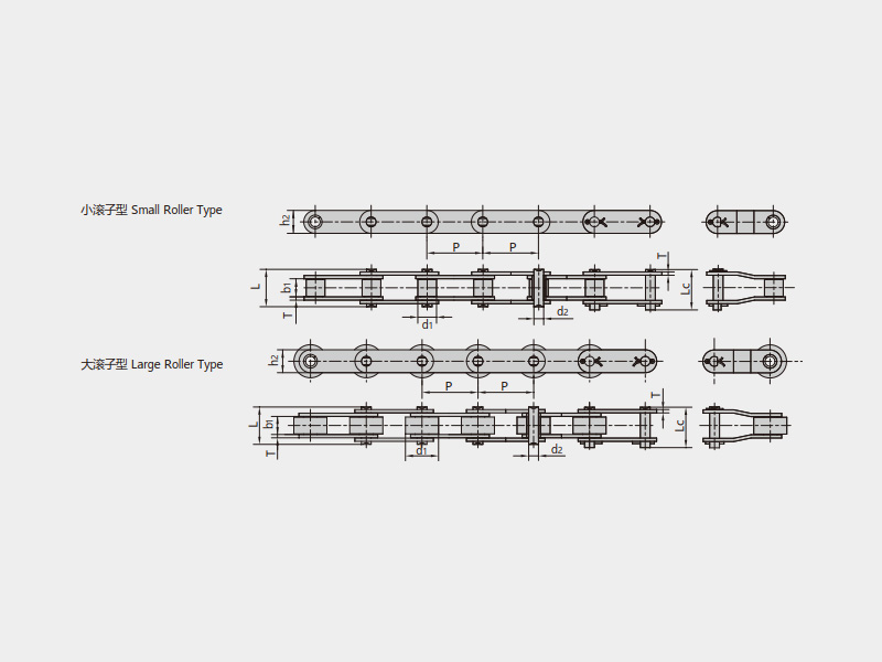 ● 輸送用滾子鏈的基鏈尺寸符合ISO、ASME/ANSI、DIN、JIS等標準的規定,主要有A系列直邊鏈板滾子鏈、B系列直邊鏈板滾子鏈、短節距帶附件輸送鏈、雙節距輸送鏈、雙節距帶附件輸送鏈等;