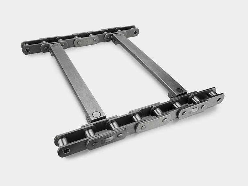 攤鋪機(jī)輸送鏈條基本結(jié)構(gòu)型式: